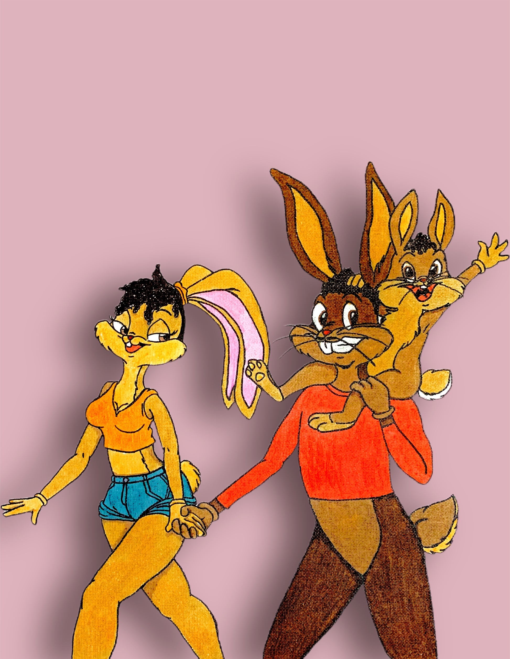 A refined celebration of love and legacy, Family reimagines the iconic Bugs and Lola Bunny in a soulful Black representation, tenderly holding their baby boy. This piece beautifully merges nostalgia with cultural significance, making it both playful and deeply meaningful.